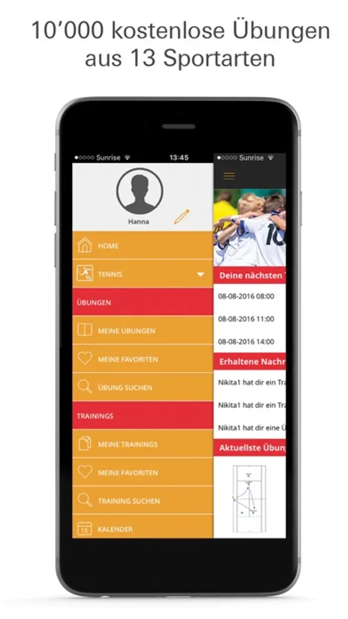Mit der OnlineCoach App bekommst du kostenlosen Zugang auf 10'000 Übungen aus 13 Sportarten.