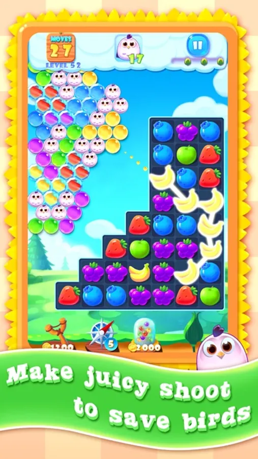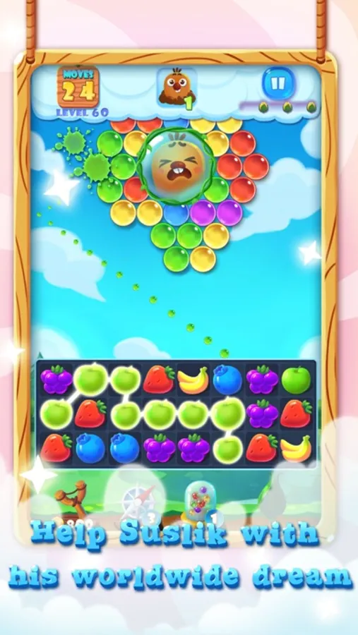 Splash fruits, shoot through bubbles in hundreds of levels to help them keep on.