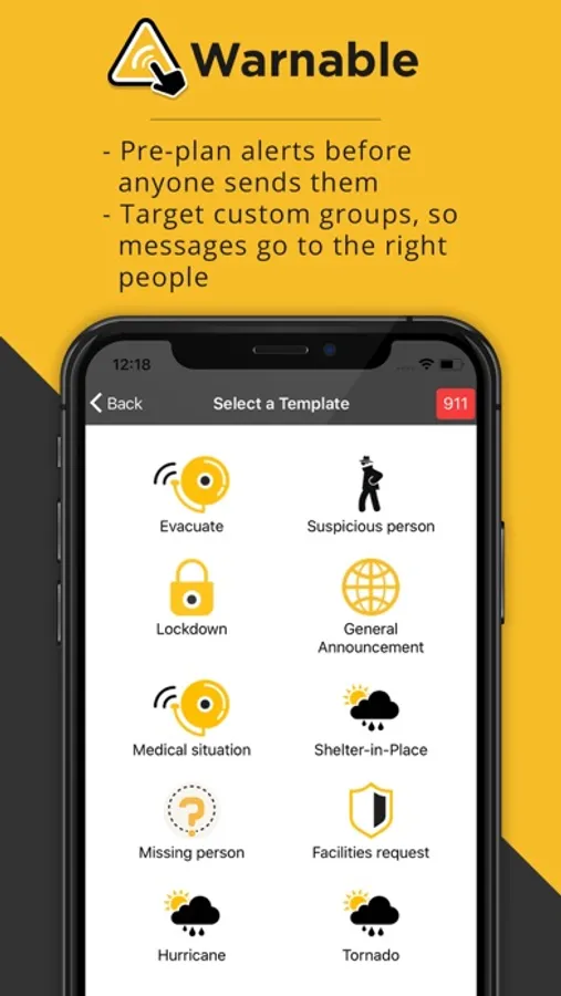 Our application lets staff members instantly alert one another of various types of situations. Using the app, users can send out customized Warnable™ alerts within seconds to notify their population of a potential threat or issue.