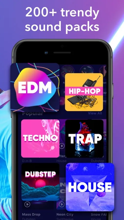 Use loops, blend them, and record your performance in a fun way. Use the pads to create top-notch mixtapes or music sets. Play while you are on the move.