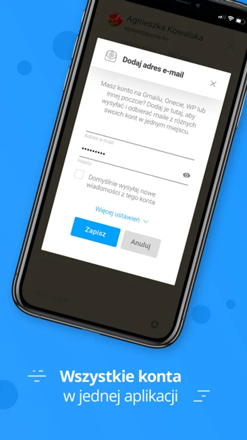 Działa szybko, jest bardzo intuicyjna i prosta w użyciu. Możesz dodać w niej każde konto pocztowe, dzięki czemu będziesz mógł wysyłać i odbierać maile z różnych kont w jednym miejscu.