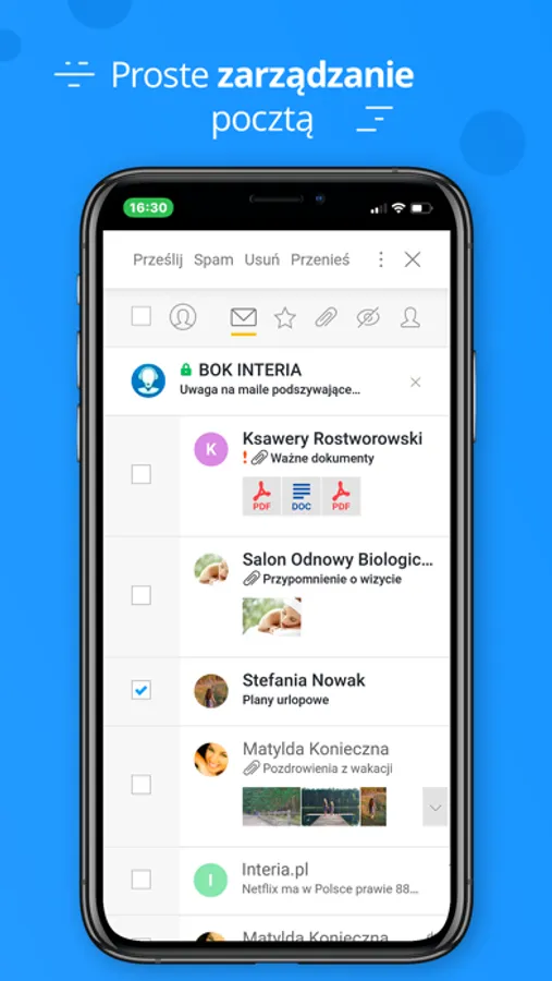Chcieliśmy aby obsługa wiadomości e-mail na Twoim telefonie była jak najlepsza. Nasza aplikacja pocztowa udostępnia pełną funkcjonalność poczta Interia. Za bezpieczeństwo i prywatność twoich maili odpowiadamy w pełni, jako jedna z największych firm internetowych w Polsce z wieloletnim doświadczeniem w świadczeniu usług pocztowych.
