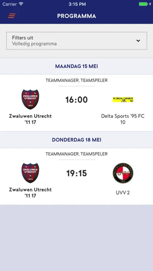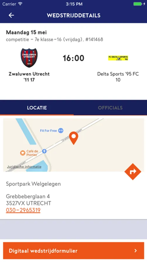 * Navigeren naar de accommodatie voor een uitwedstrijd