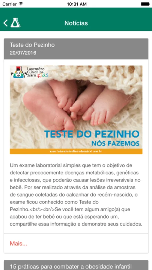 O Laboratório Clínico de Sobral continua a crescer, avançando e incorporando as mais modernas tecnologias nas áreas da bioquímica, hematologia, hormônios, imunologia, micologia, microbiologia, parasitologia, urinálise, biologia molecular, toxicologia e citogenética, além de possuir 12 unidades de coleta/atendimento em pontos estratégicos de Sobral e cidades vizinhas possibilitando maior facilidade de acesso aos clientes.
