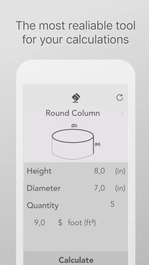 Concrete Calculator is a tool designed to make concrete calculations as simple as possible. This app will help you reduce material waste, increase efficiency and improve accuracy of concrete calculations.