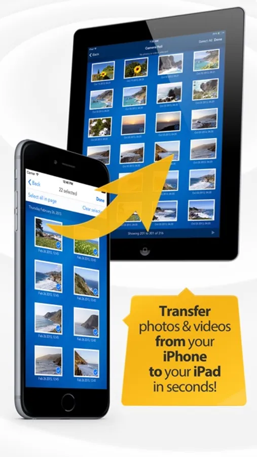 * To transfer photos from one iPhone/iPad to another both devices need to have this app installed. You only pay once when both devices use the same iTunes account to purchase apps