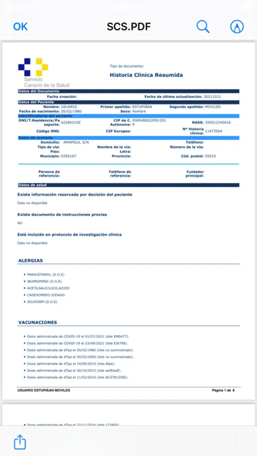 sanitaria: Datos identificativos de la persona que utiliza la aplicación, según figura en la base de datos de tarjetas sanitarias del Servicio Canario de la Salud. Asimismo, datos sobre su centro de Atención Primaria y los profesionales de medicina de familia