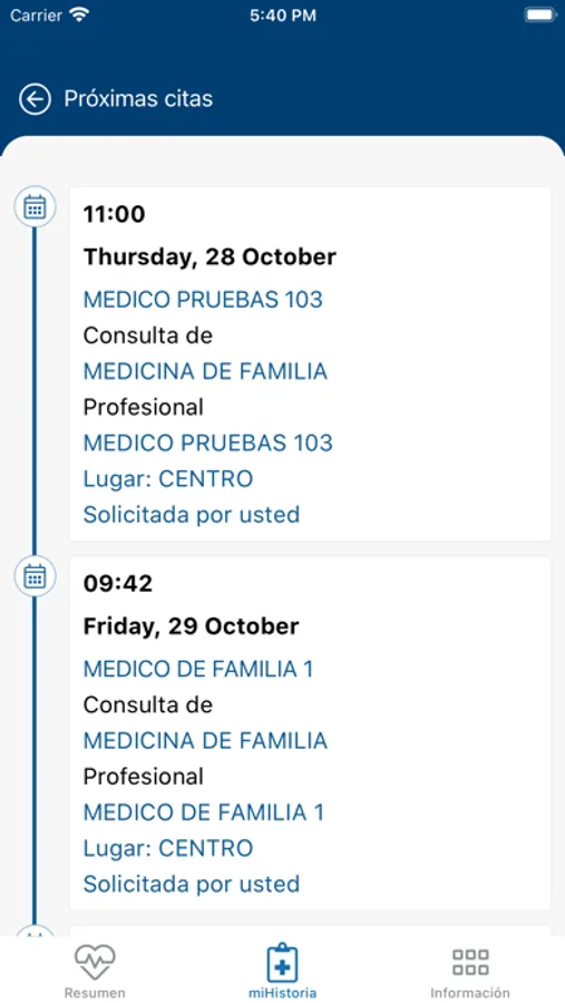 primaria de alta hospitalaria, de cuidados de enfermería, urgencias, consultas externas, pruebas diagnósticas) de su historia y de su receta electrónica.