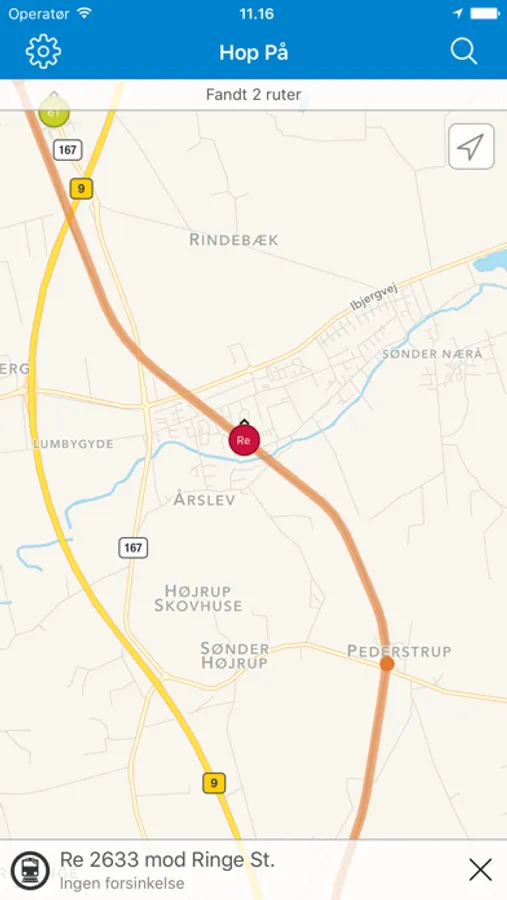 - Se bus, tog og færge direkte på kort, i realtid
