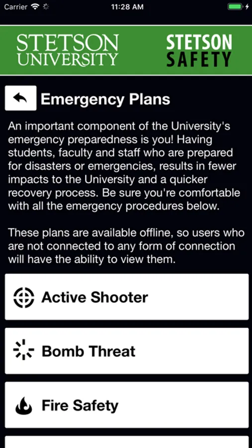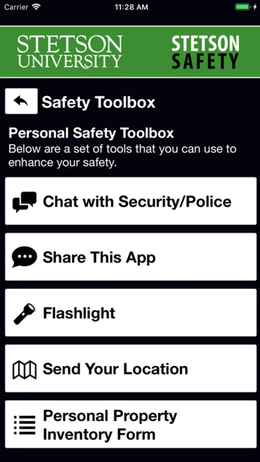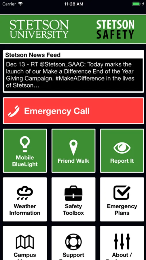 Stetson Safety is an essential tool to enhance your safety at Stetson. The app will send you important safety alerts and provide instant access to campus safety resources. Stetson Safety is the official mobile safety app of Stetson University.