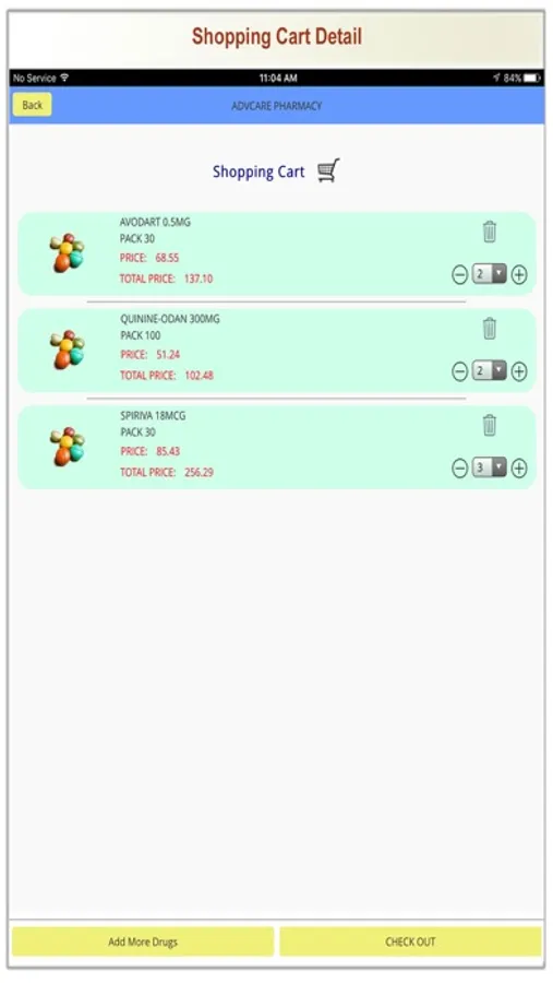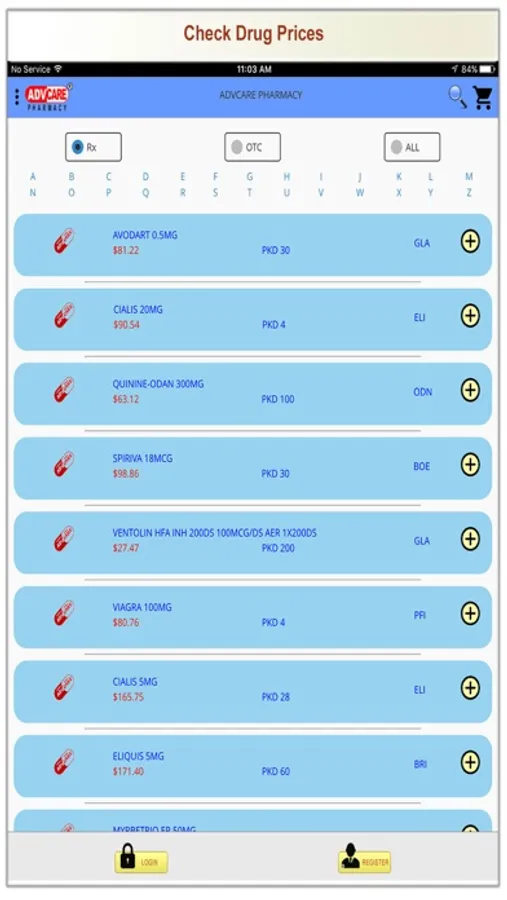 3- Customers can view the prices of the Canadian Medication & OTC products offered by the pharmacy then select the medication required to fill.