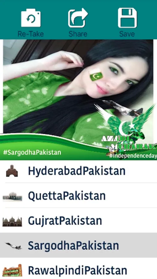 IndependenceDay Selfie is a fun and simple way to make beautiful photos in seconds. celebrate 14 August with your friends by sharing your photos With The Area You Belongs.