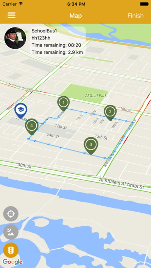 The mobile application optimizes the process of bringing students to school by allowing parents to track the school bus and receive notifications once the bus approaches their home. The application helps the drivers collect the students at the minimum distance from their houses and sends notifications once the student is safely in school.