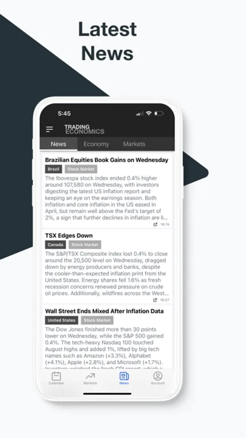 The Trading Economics app provides its users with an economic calendar, exchange rates, stock market indexes, government bond yields, and commodity prices. Users can also receive alerts for economic indicators the instant they get released. Set up price targets, price changes, and record high/low alerts for financial markets. With more than 380 million page views from more than 200 countries, TradingEconomics.com is a worldwide reference. Our data is based on official sources, not third-party data providers, and our facts are regularly checked for inconsistencies.