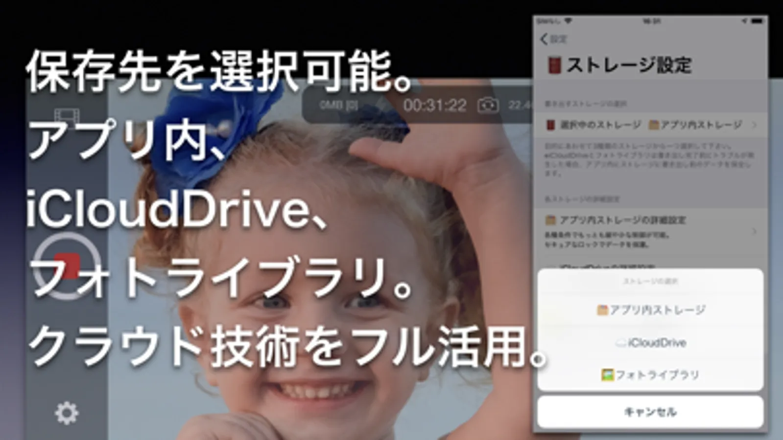 - アプリ内ストレージ、iCloudDrive、フォトライブラリの3種類の個性的なストレージを目的に合わせて選択可能です。