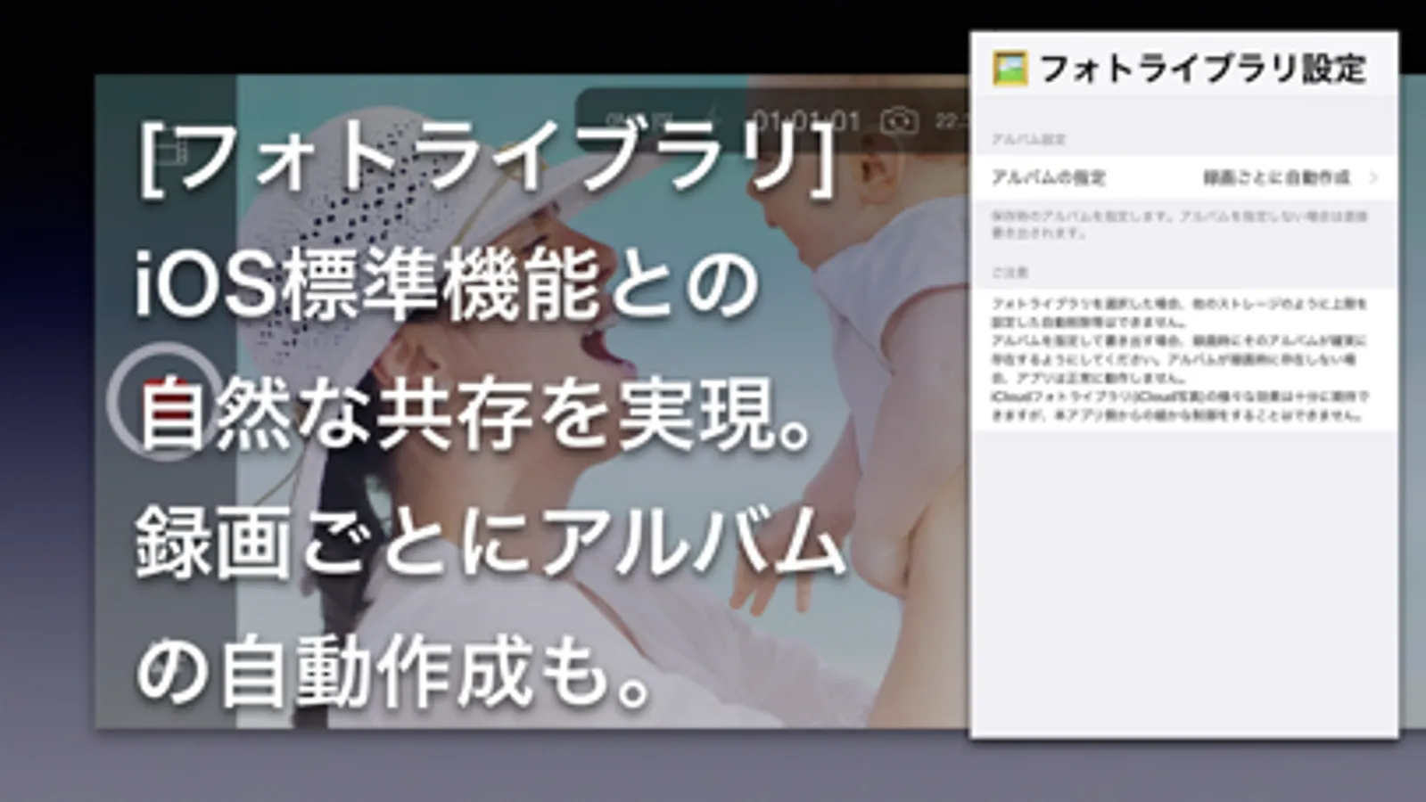 - 保存場所となるアルバムも指定可能。または録画ごとにアルバムの自動作成も可能です。