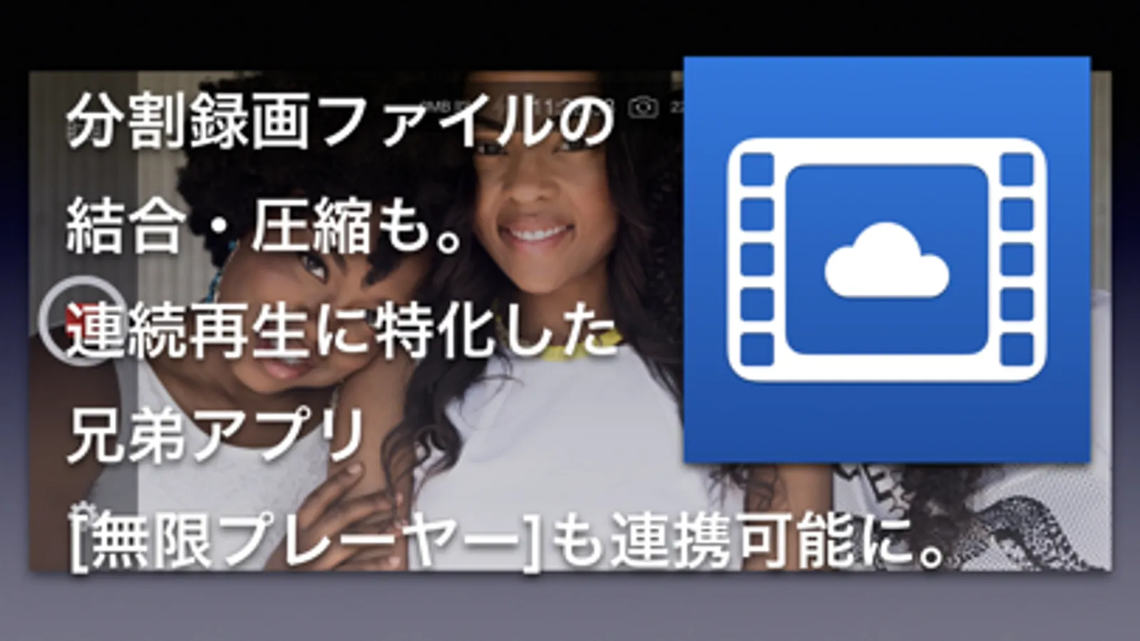 - フォトライブラリのデータは、無料の兄弟アプリ[連続ビデオ再生]でスムーズに連続再生可能です。
