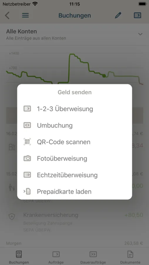 • Saldo, Umsätze, Überweisung, Terminaufträge, Daueraufträge, Lastschrift, Auslandsüberweisung
