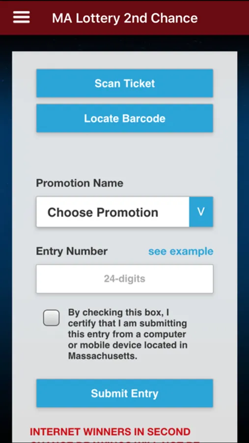 The official app of the Massachusetts Lottery Second Chance offers our players a quick and convenient means to scan non-winning instant tickets in new promotions for Second Chance Drawings. Players will also be able to play an interactive game and winners can redeem prizes from the Store and even access their VIP Players Club Account.