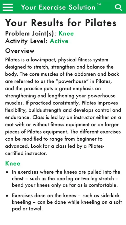 Exercise can help ease arthritis pain – but which one is best? The answer is as unique as you are. Your Exercise Solution tool provides a personalized exercise plan. You will be able to identify where you have pain, select your current fitness level, choose an activity that is right for you and learn modifications that let you exercise safely.