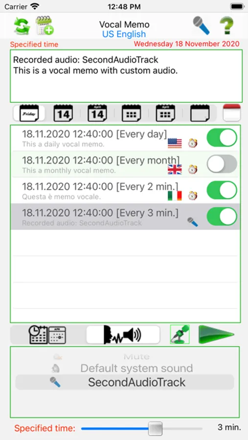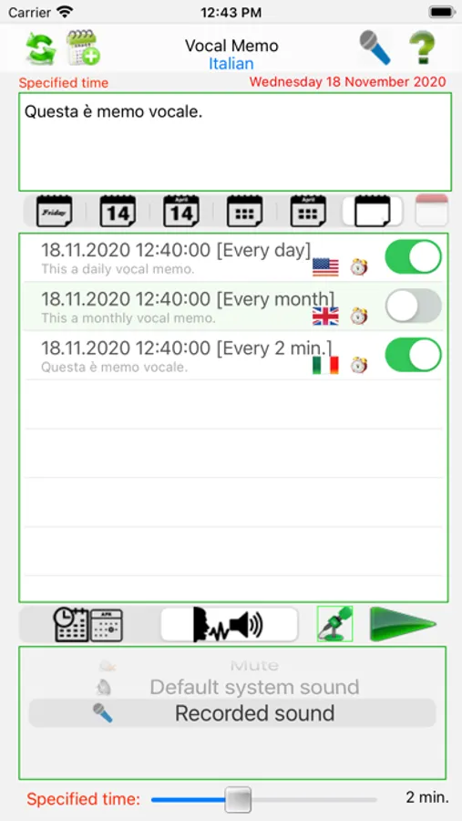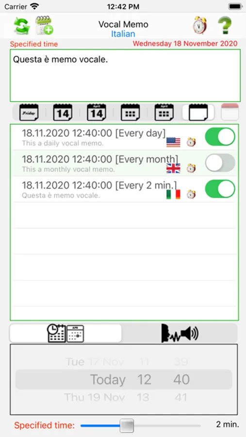 Vocal memo is a small and practical electronic agenda that allows storing any event vocally in 32 different languages, also concurrently. Everything is readily available even when the app is turned off. It’s an app that allows to remember everything quickly, without watching the iOS® device screen, but simply touching it.