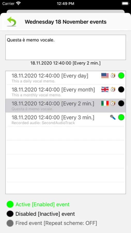 - Possibility to enable/disable a stored event without deleting it from the list.