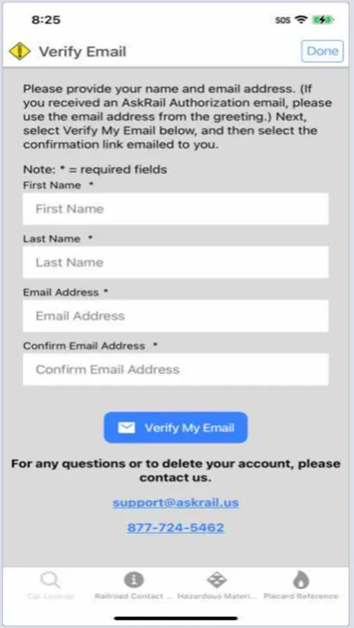 The AskRail app is a hazardous materials safety tool for first responders who are first on scene or directly support the first on scene in the event of a rail incident. Access to certain features, including the ability to query railcar contents based on an equipment number, is restricted to authorized personnel.