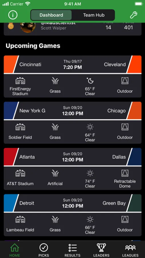 See how well you’re doing compared to others on the weekly and all-season leaderboards. Scores are accumulated from each winning pick and calculated at the end of each game week to determine the winning players. The total scoring is used to determine the winners at season-end.