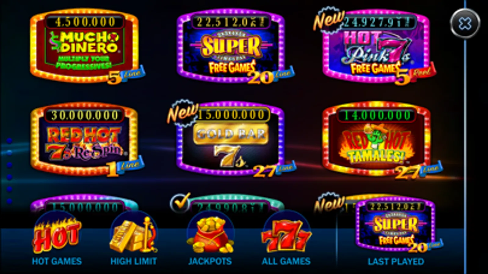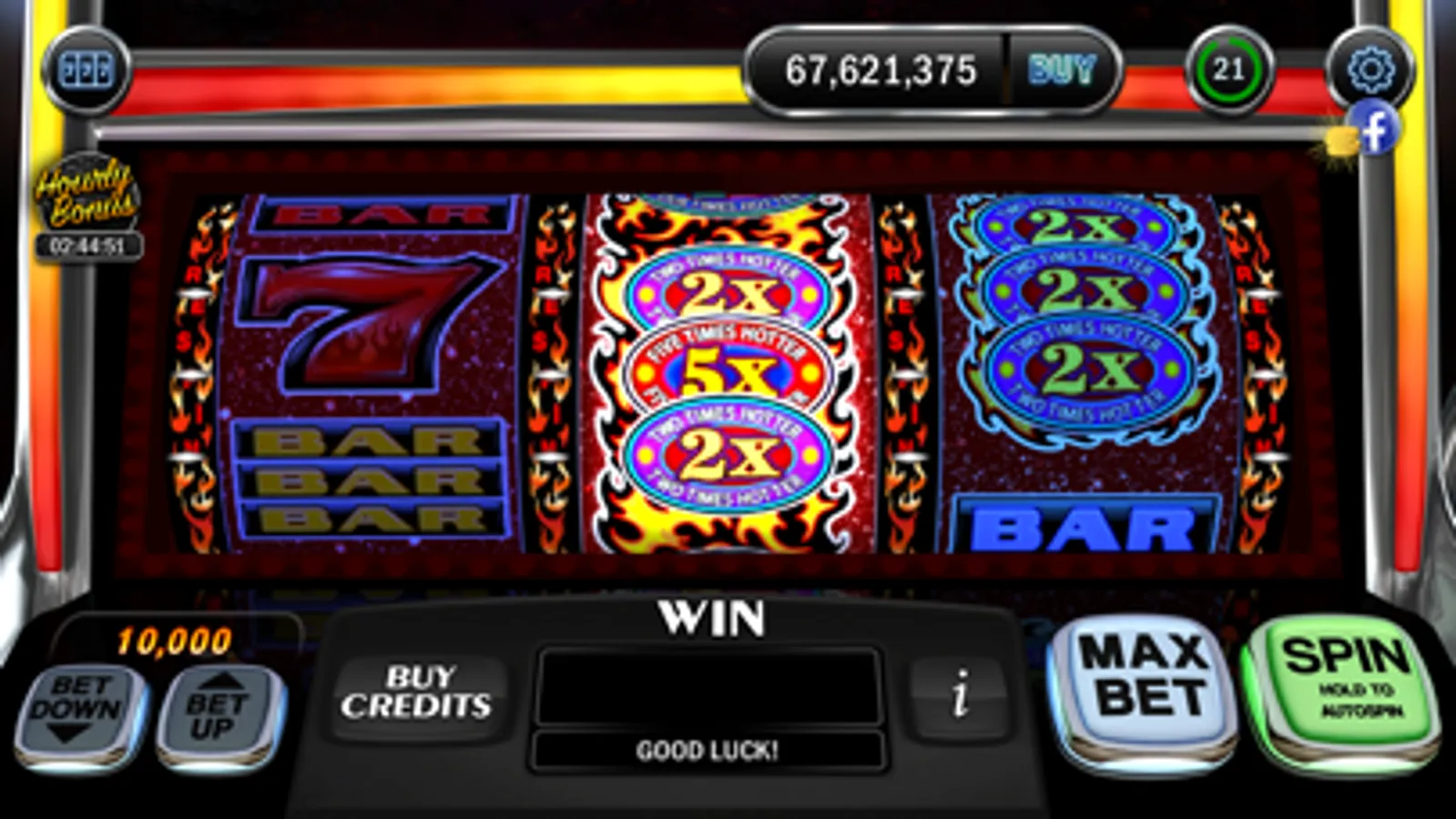 Take a seat among famously winning slot machines you won’t find in any other app! Top Slots like Spinferno Red Hot Diamonds, Red Hot Tamales, Gold Creek, Hotter Than Blazes & Super Times Pay. PLUS, find all the true casino favorites like Triple Double Diamonds, Sizzling 7s, Triple Double Butterfly Sevens & Double Diamond Deluxe. Every slot is available to every player, from the very first spin.