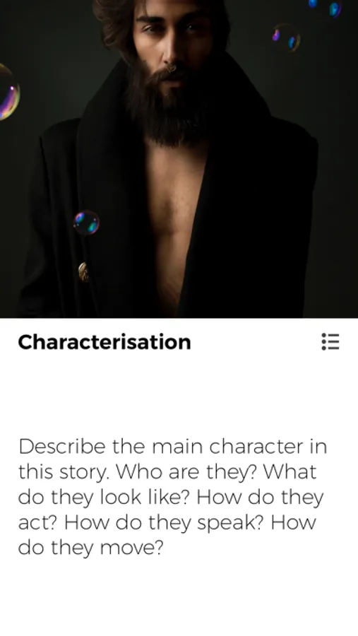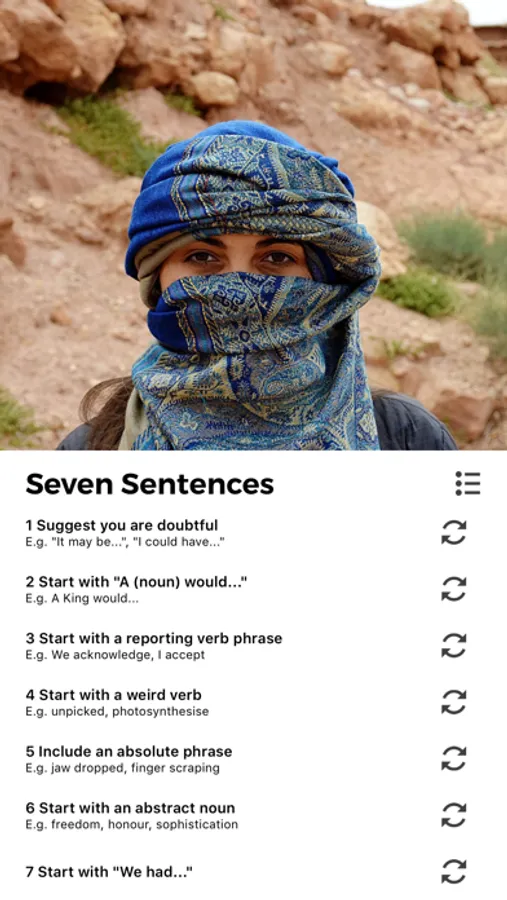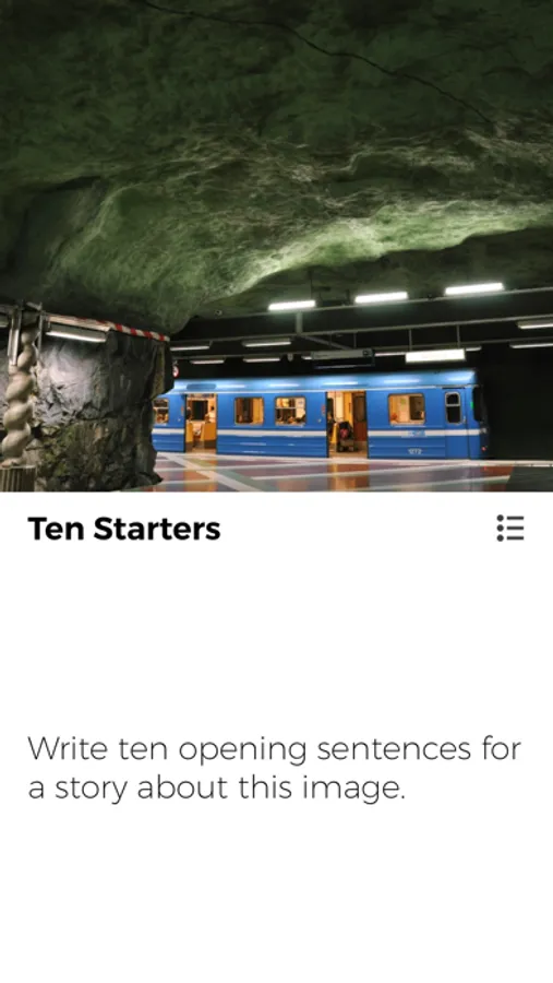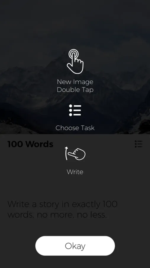 Don't like the image? Double tap to load a new random image. Choose a task then swipe up to get writing!