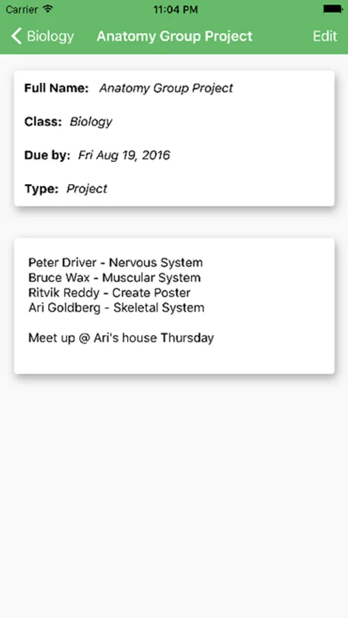 - Add notes to remember group members or assignment details