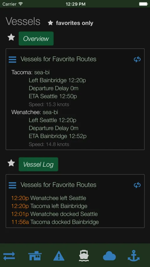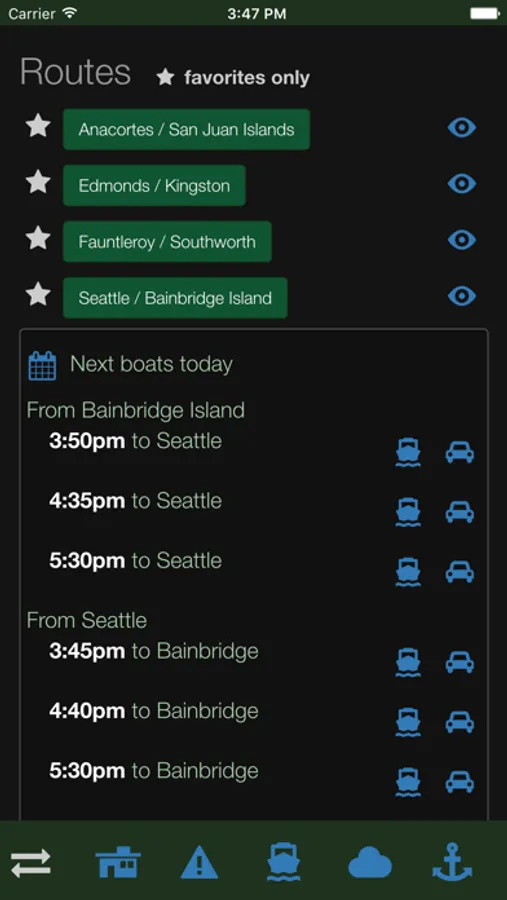 Mark your favorite routes and terminals for easy and quick access to upcoming ferry times, future schedules, as well as vessel and sailing space status.