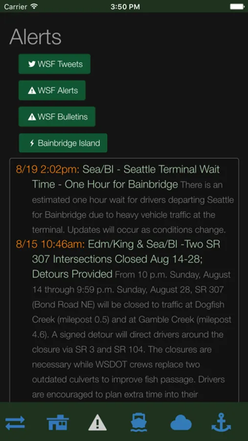 nextboat also provides quick access to WSF's official, most recent tweets, ferry-cams and alerts that might impede your voyage.