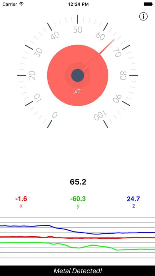 Metal Detector is a portable metal detector. By detecting nearby electromagnetic fields using the phone's built-in magnetometer/compass, you can locate nearby metal and magnets. You can also use it to find metallic studs and wiring behind walls. Depending on your phone, you can use it to detect metals up to 30cm away, and magnets from far, far away! Note that household equipment like TVs, and computers or even your phone case can affect readings. You can set a threshold at which the phone will vibrate when a critical reading has been reached.