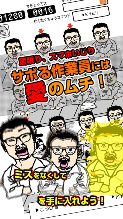 Tap a worker who is asleep, playing a game on a smartphone and tapping.