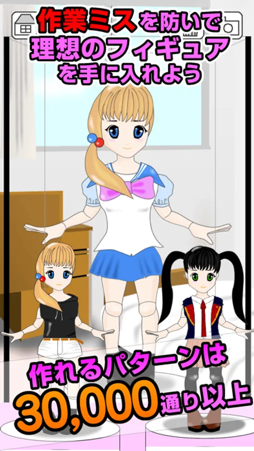 Parts such as hairstyles, faces, arms, and legs are replaced according to the number of mistakes made by workers.