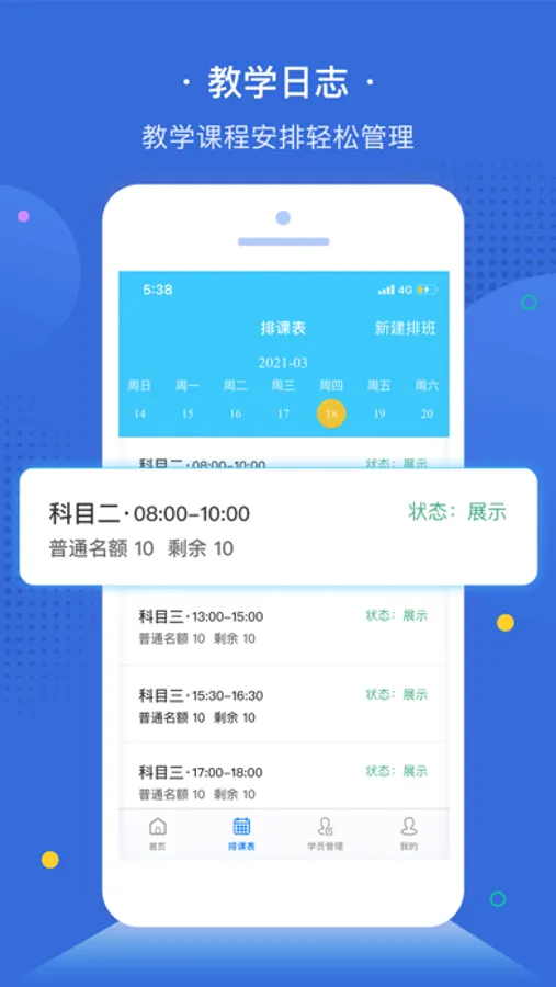产品简介:e学e驾教练版是一款专门为驾考教练量身定做的产品。简单快捷的查询课时排版及学员管理功能,帮助教练高效便捷的掌握学员的学习计划和学习进度及。e学e驾教练版,驾考教练好帮手。
