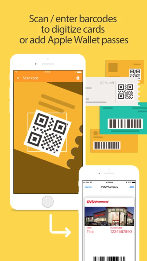 [Noted] When scanning the barcode types (Code 39, Code 93, Code 39 Mod 43, EAN 8, EAN 13, UPC E) which are not supported by Apple Wallet, they will be converted into strip images and displayed on the top of store cards or coupons.