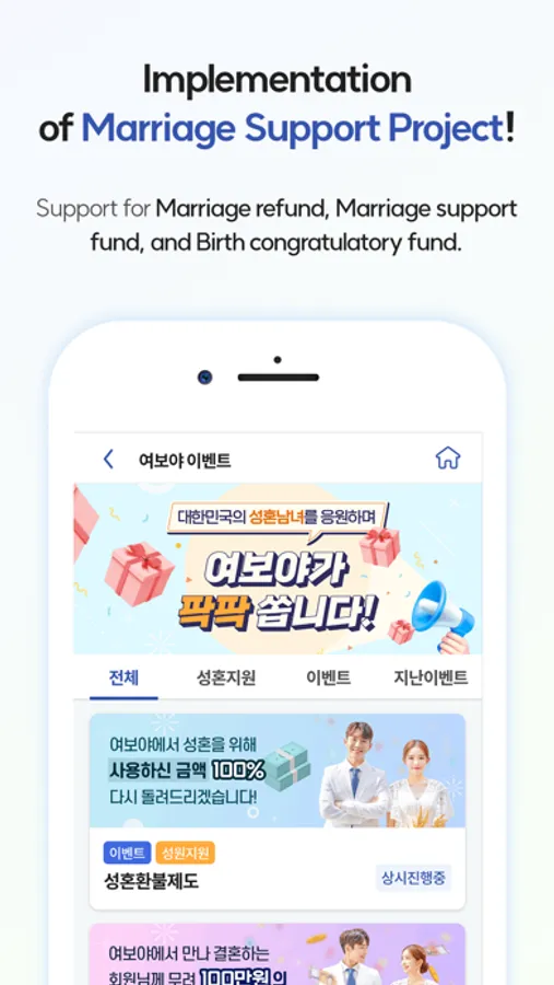 - Childbirth congratulatory fund: Yeoboya gives an additional congratulatory fund of KRW 1 million to members who have succeeded in both marriage and childbirth on Yeoboya.