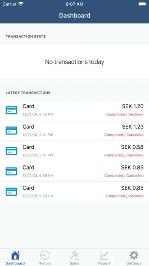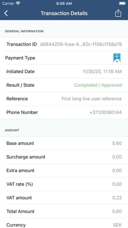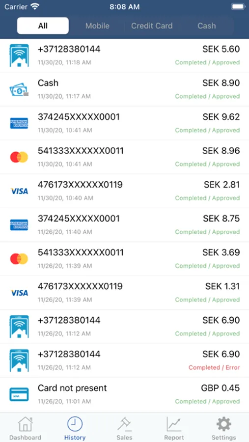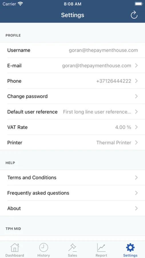 Payment card payments are processed by via a Bluetooth connection to a mPOS card reader. When the mPOS have received the purchase amount Merchant’s system or manually entered in the mobile application and a payment card has been inserted, the mPOS manages the payment transaction via the mobile application through the relevant Merchant’s Acquirer.
