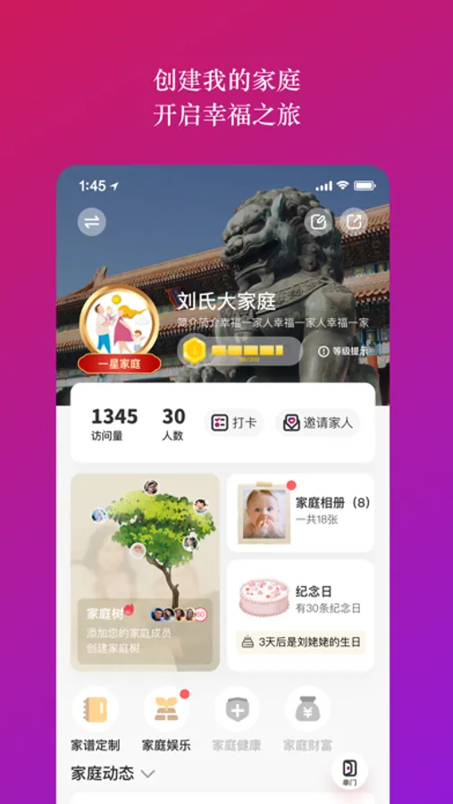 族谱APP是族谱网旗下的家庭亲情寻根平台,提供查询族谱、寻根问祖及国学经典古籍阅览、地方志查询、修谱知识、现代家谱族谱制作指引、个人日记记录、画册相册制作、家族档案存储、老黄历查询、家庭相册保存、家族宗亲人脉社交、网上祭祖、祭扫、姓氏圈子交流等服务;