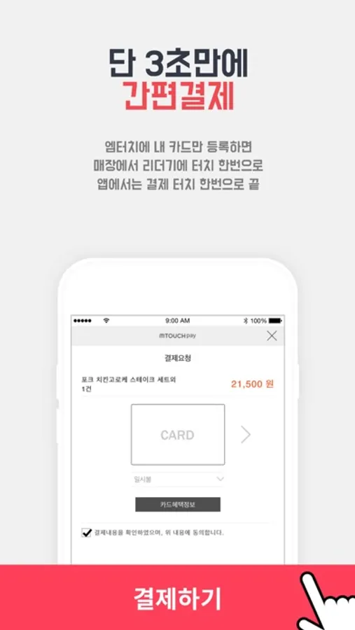지갑이 없어도 괜찮아요 엠터치에 등록한 신용카드로 쉽게 테그 해서 결제 할 수 있어요
