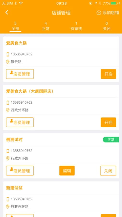 店铺管理:营业时间随时设定,随时开关店铺。