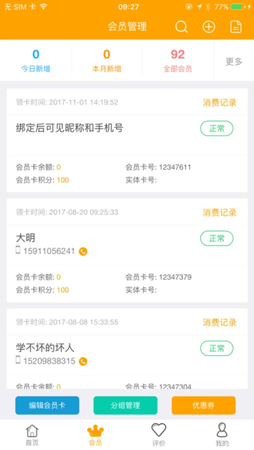 会员管理:会员数据统计,会员余额充值管理。