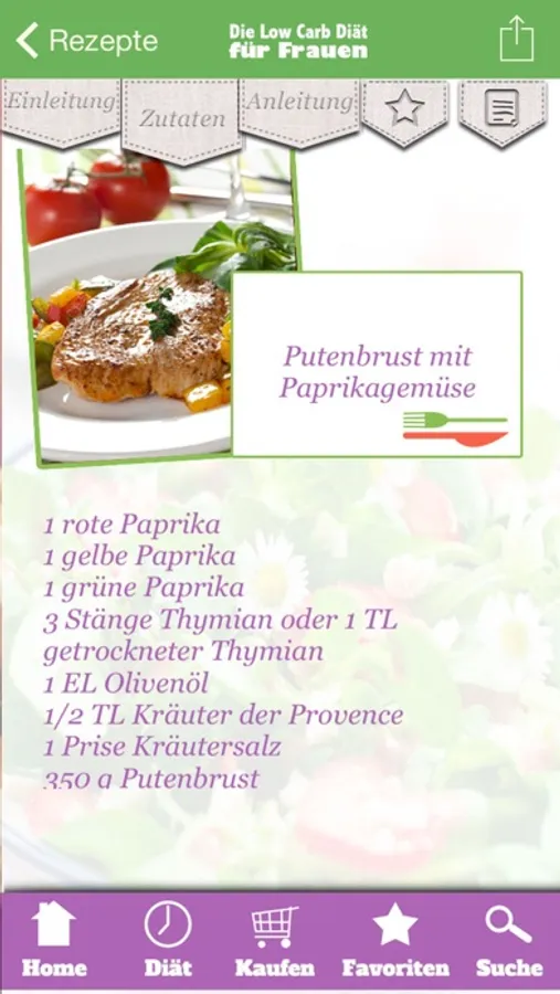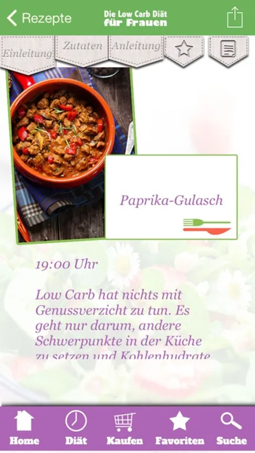 Die erste Low-Carb-Diät für Frauen hat die Durchhalte-Garantie: Da kommt garantiert bei keiner Frau Diät-Frust oder Heißhunger auf. Denn nach einer leichten Suppe oder einem leckeren Salat am Mittag gibt es am Abend ein kohlenhydratarmes, aber reichhaltiges Gericht, das schmeckt und sättigt: Nie zuvor war Low Carb so lecker und so gezielt auf den weiblichen Fettstoffwechsel ausgelegt.