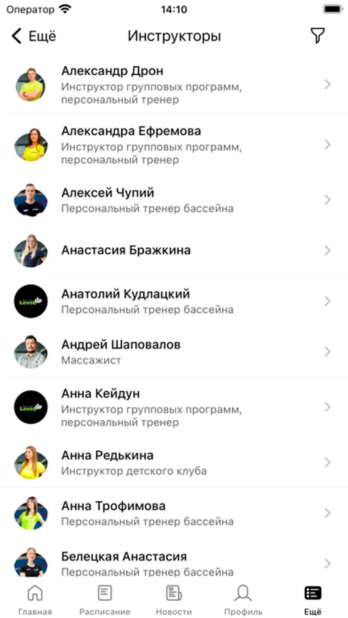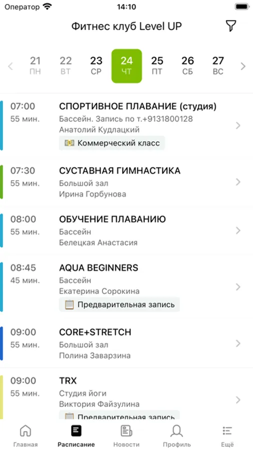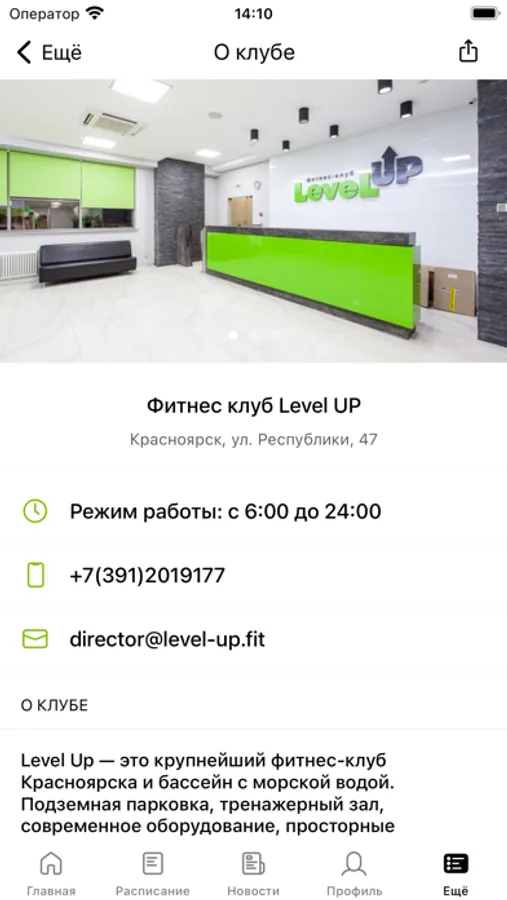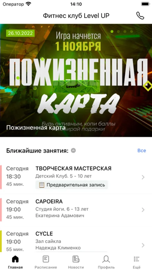 Приложение предназначено для клиентов фитнес-клуба Level Up.