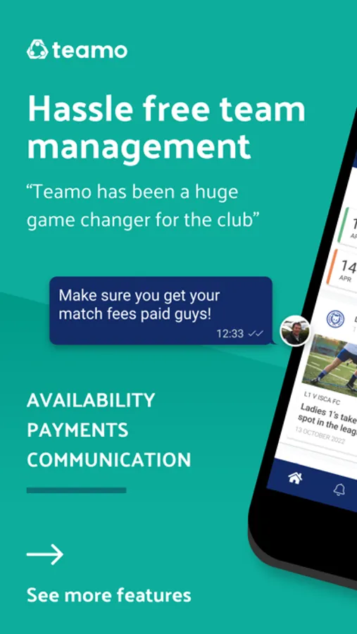 Teamo is suitable for everyone from 5-a-side social teams to large clubs with 2000+ members. Get started with Teamo today for FREE in minutes, and access the app’s full functionality anytime, anywhere.