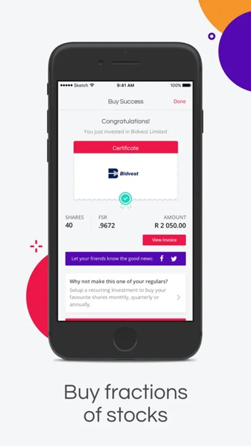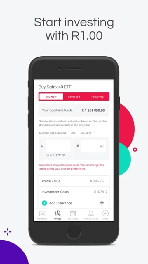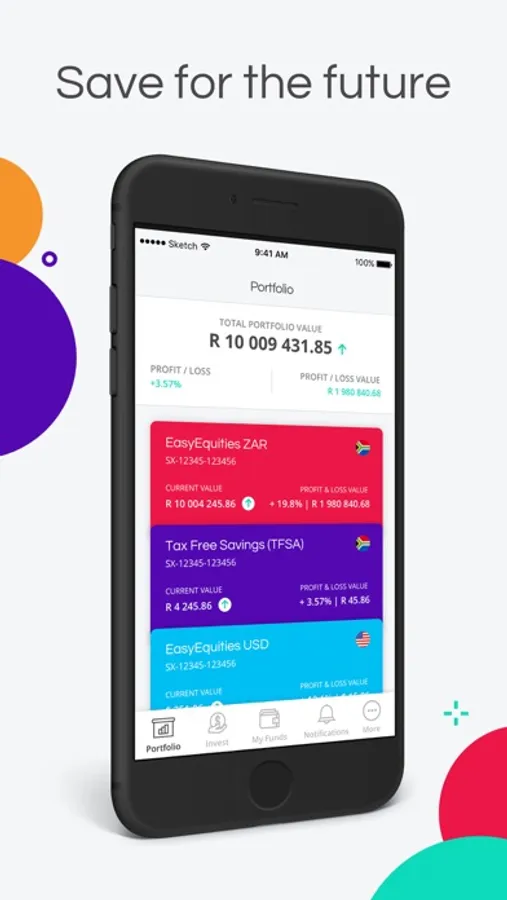 • Invest in shares, ETFs, Retirement Annuities Tax Free Savings Accounts (TFSA) and Unit Trusts, all low cost and easily accessible in one app.