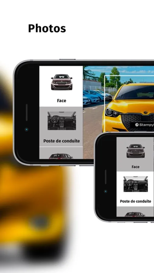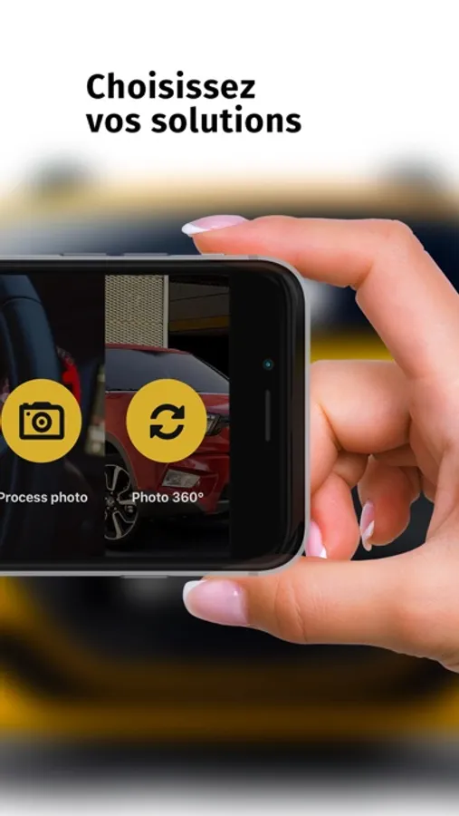 - PHOTO PROCESS: industrialisation and digitisation of used car photos. The photo process makes it possible to standardise all shots of the vehicle and to automatically guide the user from their smartphone. No need for cables to import photos onto a computer: the images are automatically uploaded online or to your professional tool.