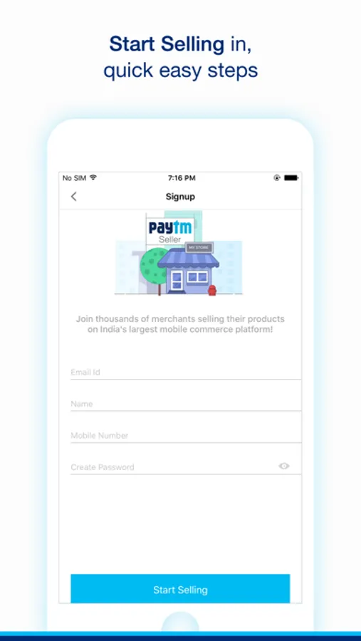 Sign-up: Not a seller yet? Give a kick to your business through Paytm. Seamlessly sign-up using “Create Your Store Now” option. With this hassle-free sign-up, you can start selling on Paytm.